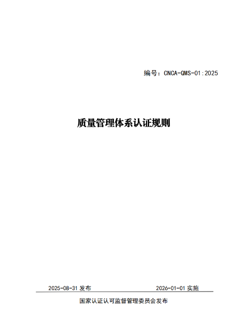 为根治这一行业顽疾,国家认监委(CNCA)于2025年发布了新版《质量管理体系认证规则》(CNCA-QMS-01:2025),并规定自2026年1月1日起正式实施,旧版规则同步废止。新规的出台旨在压实认证机构和获证企业的主体责任,提升认证活动的规范性和有效性,推动质量管理体系认证从"形式合规"真正走向"实质有效"。